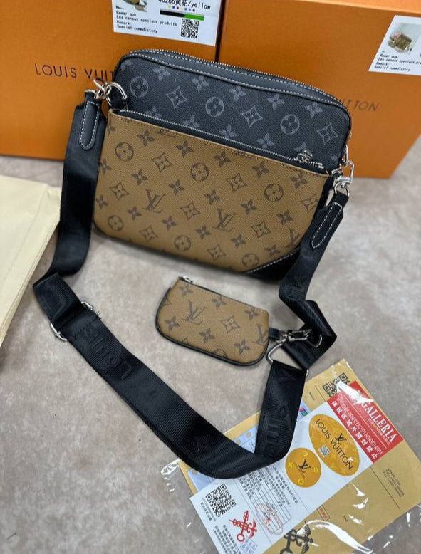 Louis Vuitton Strong Leather Trio Bag Men Women in Brown Colors UK Reps AAA Quality