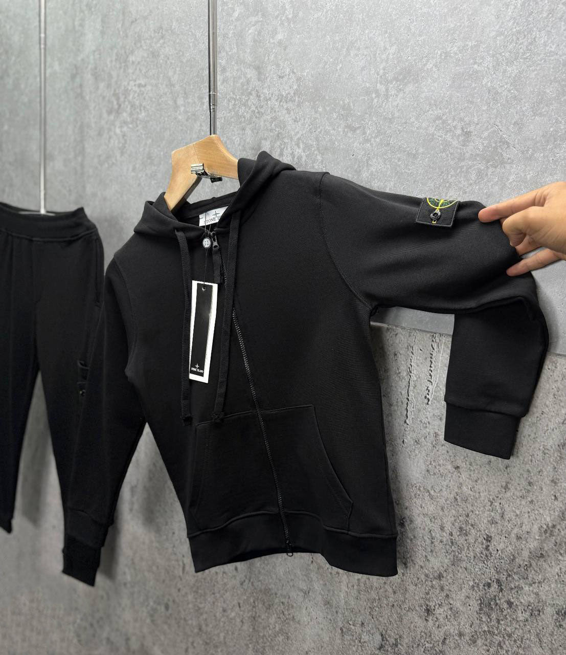 Stone Island Relaxed Fit Logo Patch Tracksuit Kids in Black Color Best Sale UK Reps AAA Quality